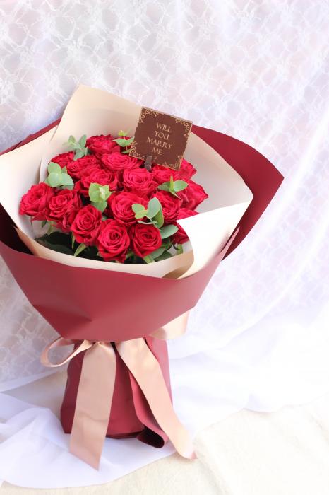 21本の赤バラの花束【片面プロポーズプレート付】
