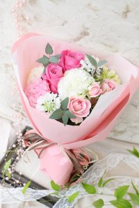 女性らしいピンクが印象的な可愛らしい生花のブーケ(*^^*)
