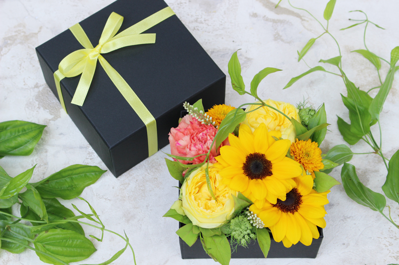 ガラスドームの中にお花がキュッと詰まった可愛らしいアレンジ(*^^*)