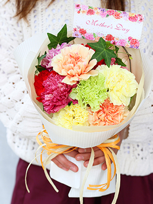 八重咲きの花が可愛く、優しいお母さんに贈りたくなる、ふんわり柔らかい色合いが大人気です!